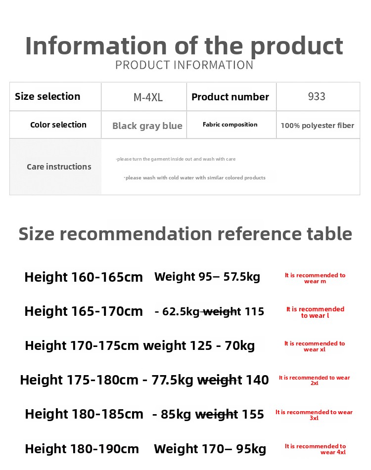 Sizes: M, L, XL, 2XL, 3XL, 4XL