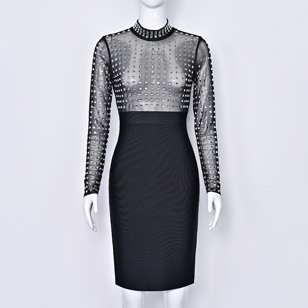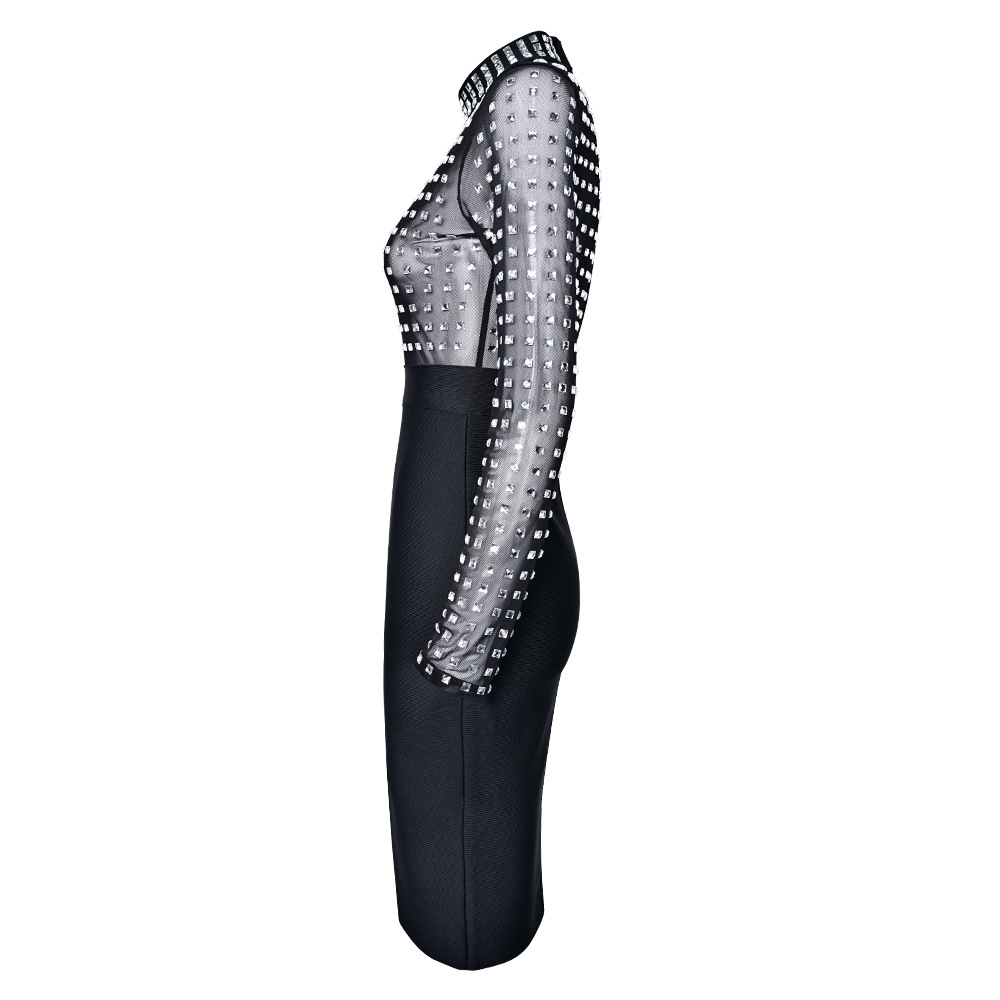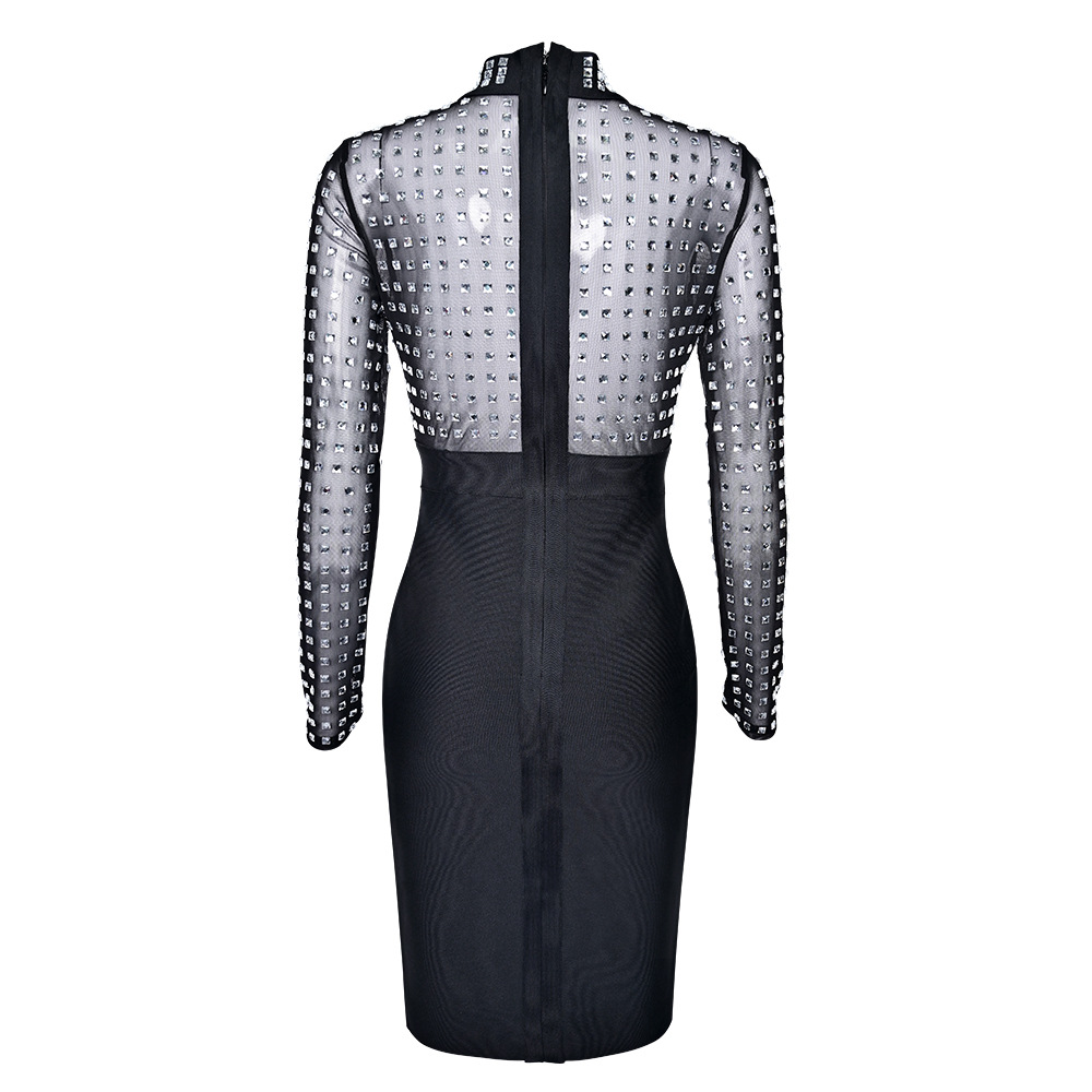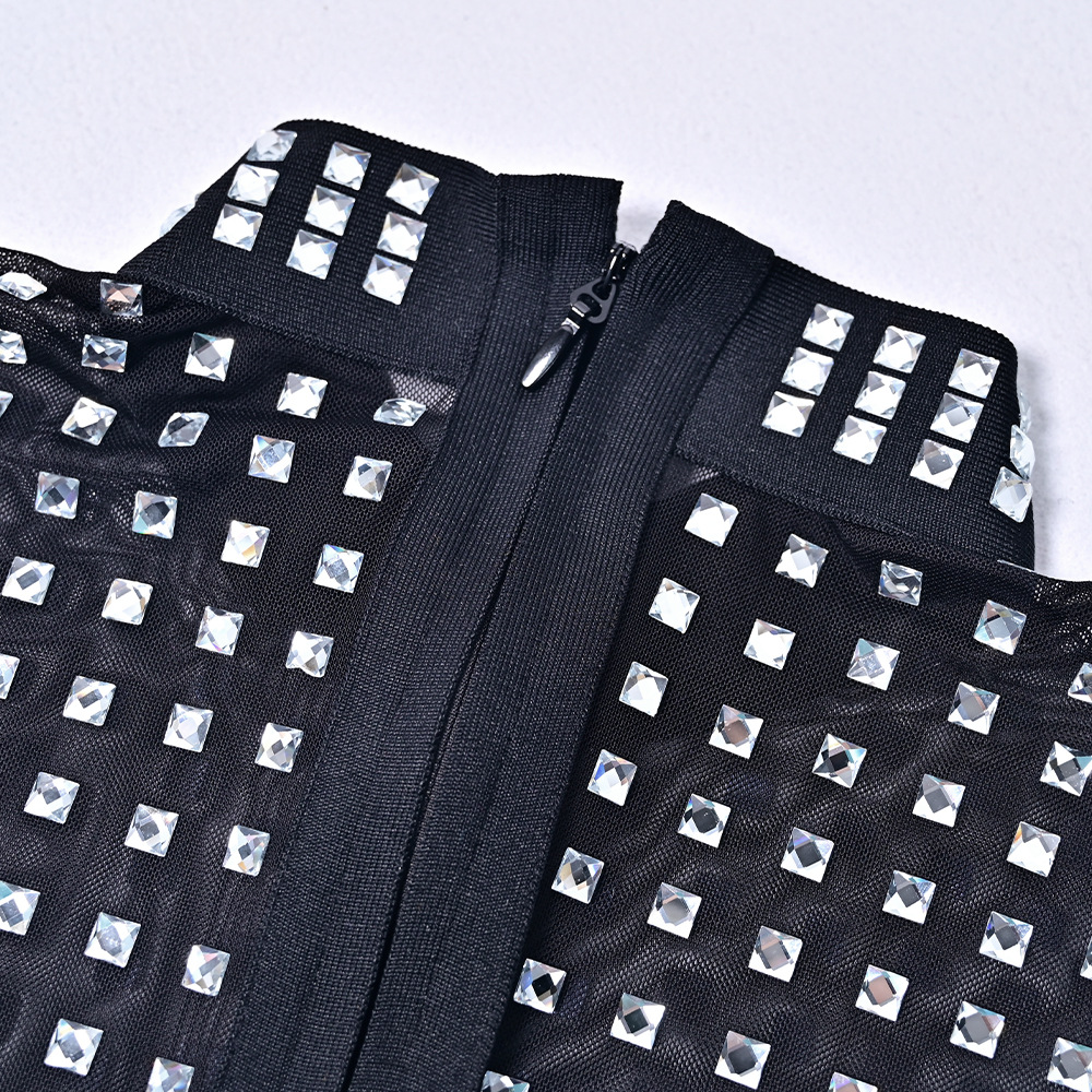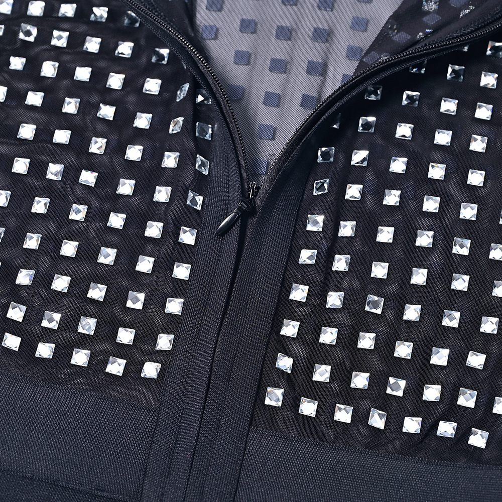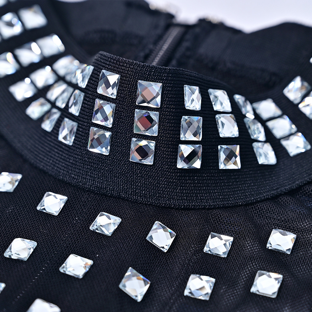 Black Rhinestone Bodycon Bandage Dress
