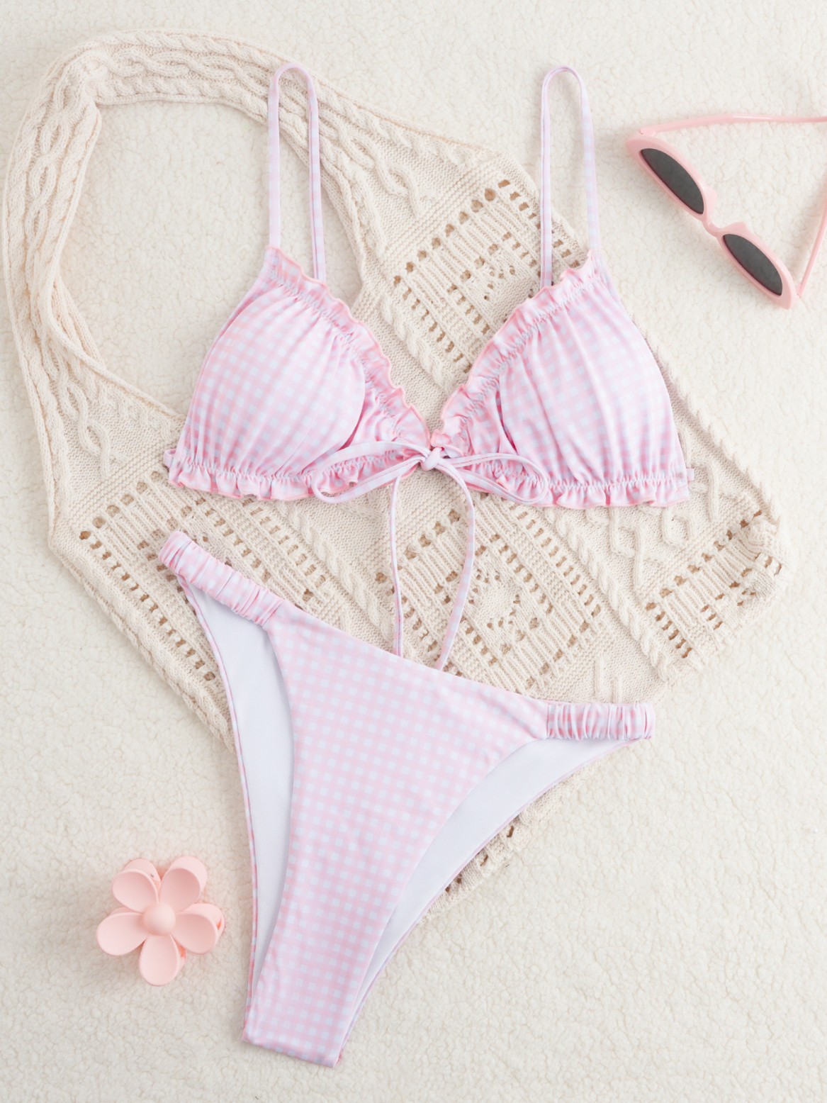 Pink Plaid Push-Up Bikini Set
