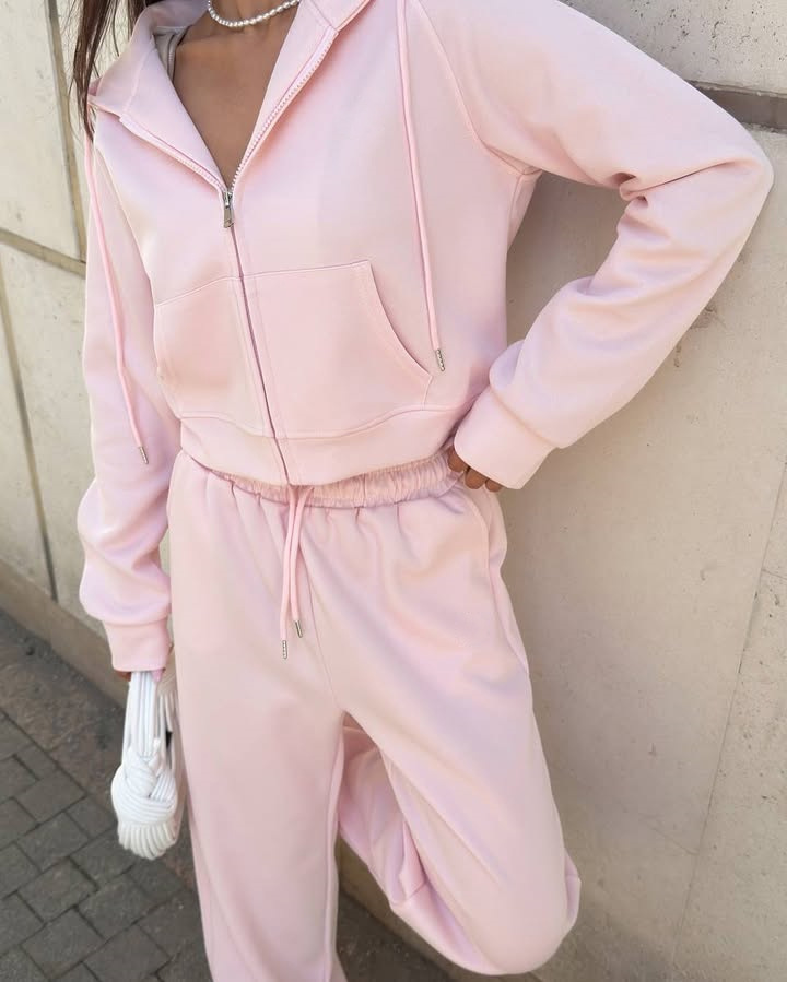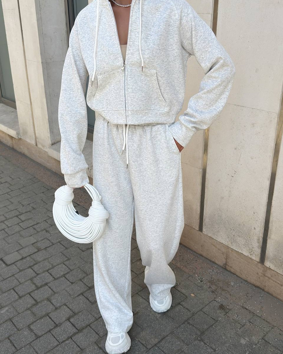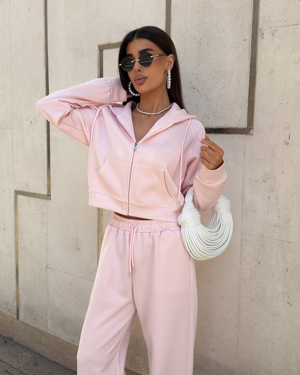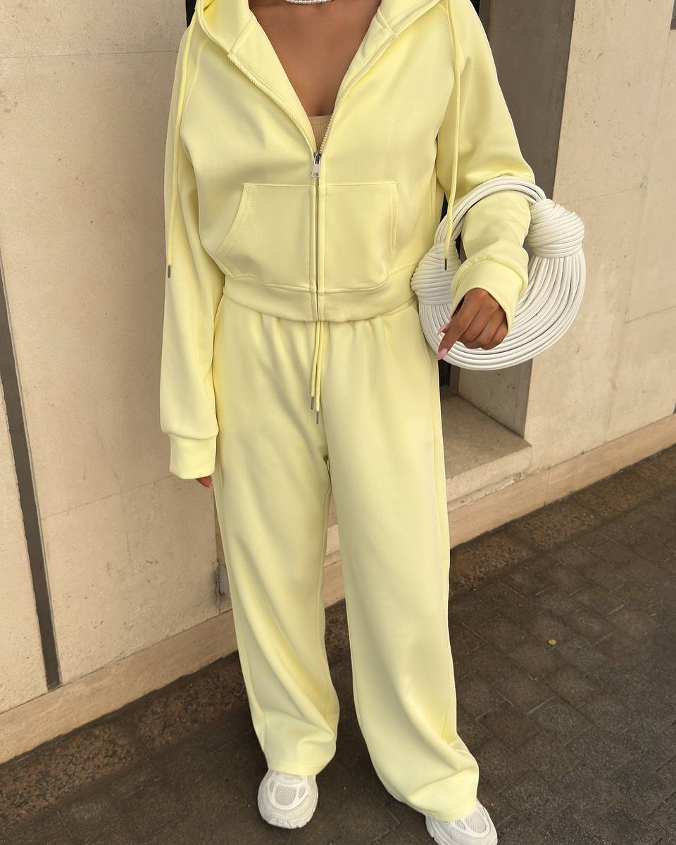 Casual sportswear set with hooded jacket and drawstring pants