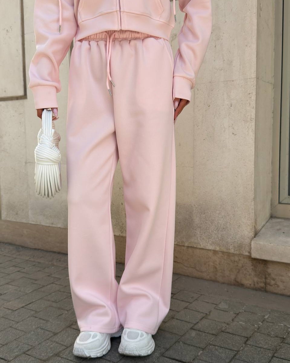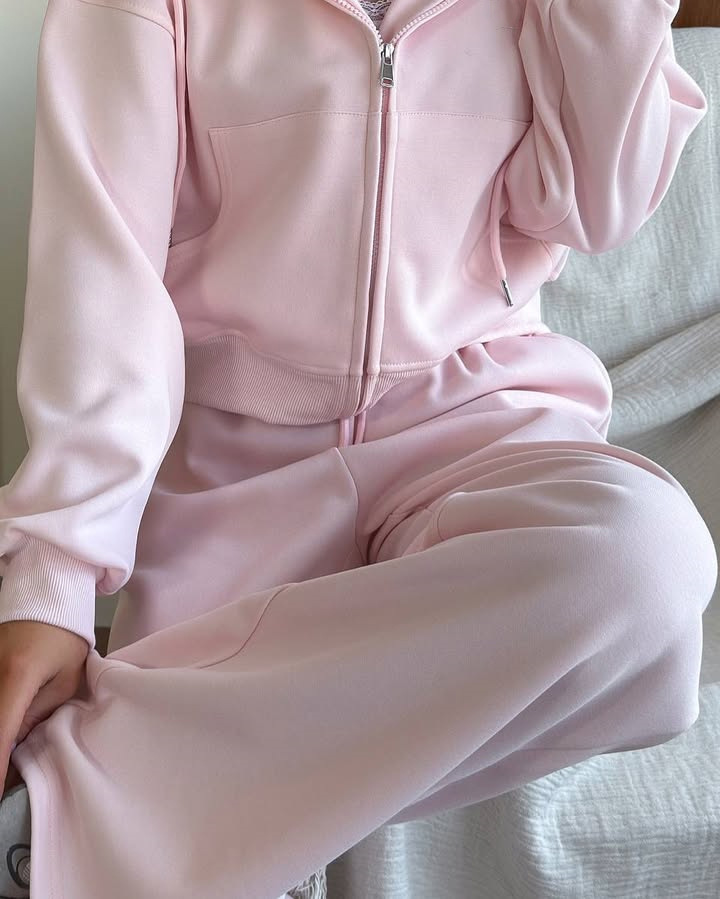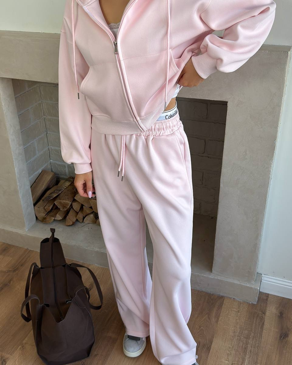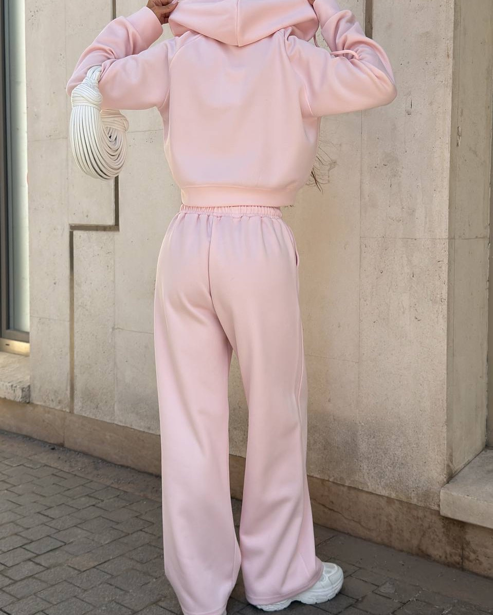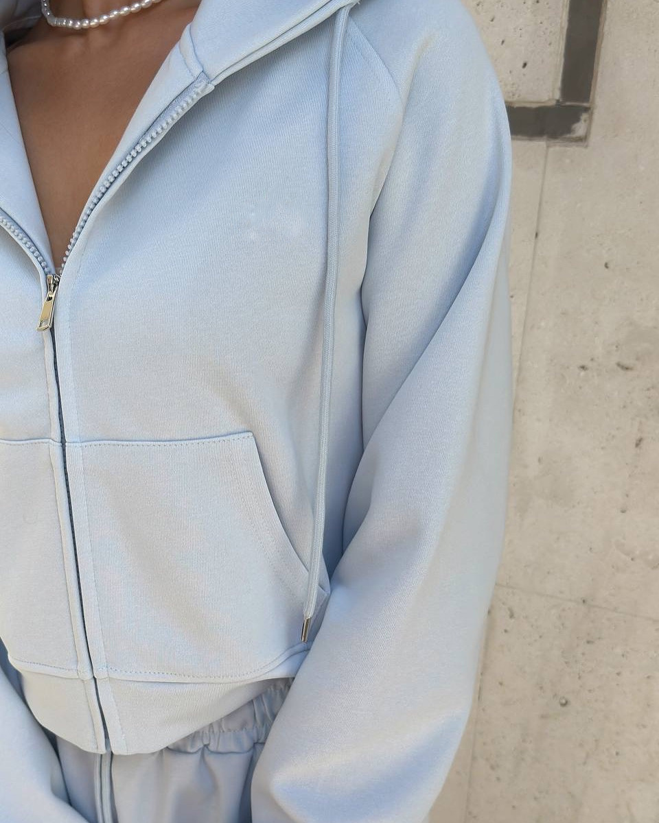 Casual sportswear set with hooded jacket and drawstring pants