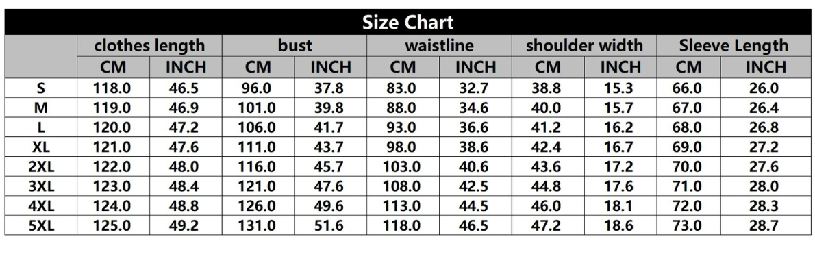 Sizes: S, M, L, XL, XXL, XXXL, 4XL, 5XL