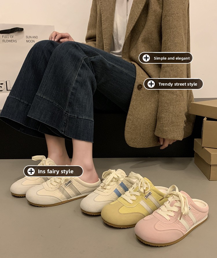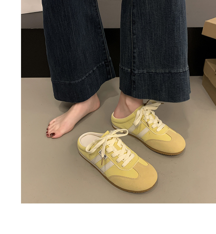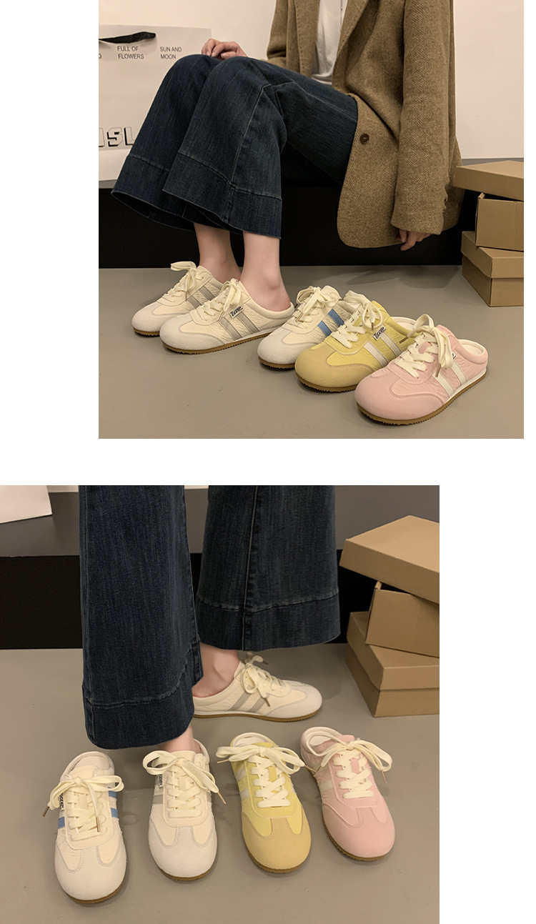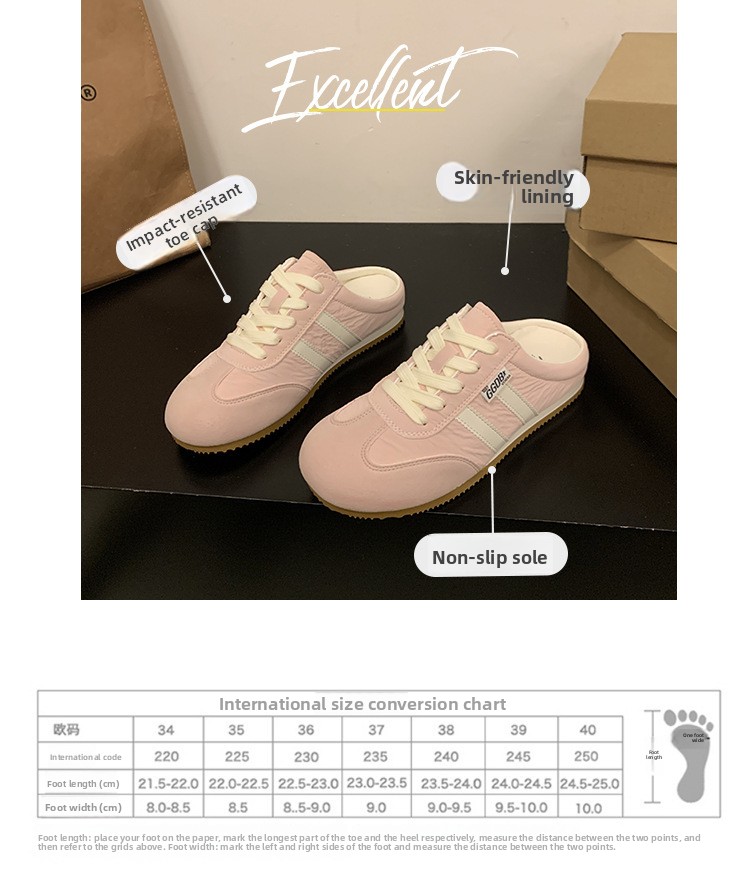 Comfort Design: Heelless slip-on style with front tie closure for easy wear and adjustable fit