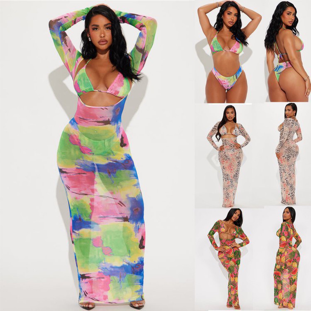 Three-Piece Set: Includes bikini top, bottom, and a cover-up blouse for versatile styling.